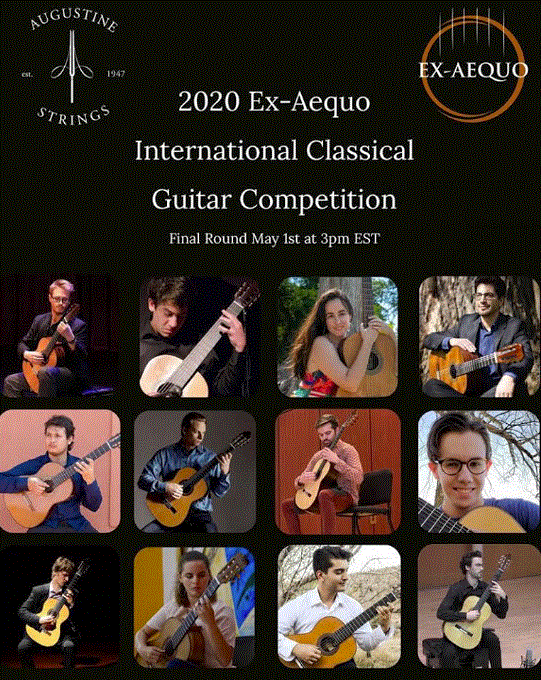 The 2020 Ex-Aequo International Classical Guitar Competition will be a first of its kind online competition that highlights individual artistry and creativity. What sets apart this competition from others is that there will be no singular winner. Instead, four Grand Prize winners will split the $2000 Augustine Strings Grand Prize...ex-aequo. Those four winners will share a live-streamed concert at the end of the festival.